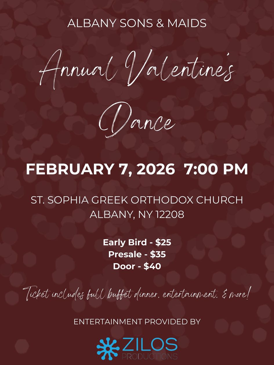 The Albany Sons and Maids Valentine's Dance is on February 7, 2026. Early bird tickets are on sale until November 30. December 1 until the day of the dance is presale. Payment is by Venmo @moasophia48, check or cash. Please click below for tickets. See you there!